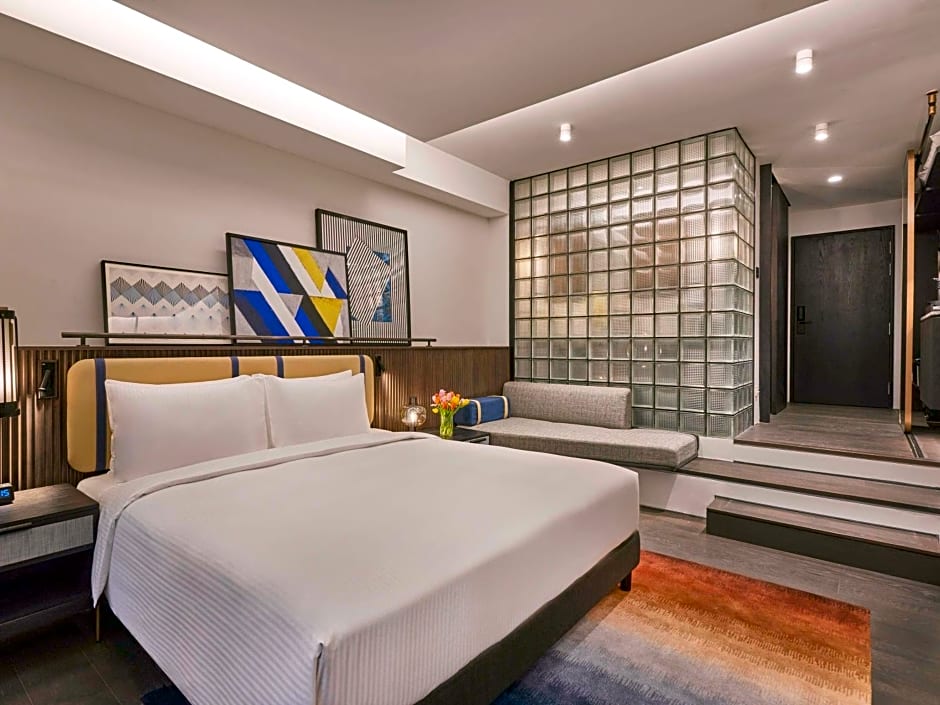 DELUXE SUITE, 1 King bed, Orchard Road View is 624 square feet and includes a king-size bed 150-183 width plus living room, desk, satellite tv , hairdryer, tea and coffee making facilities , bathrobes, and slippers.