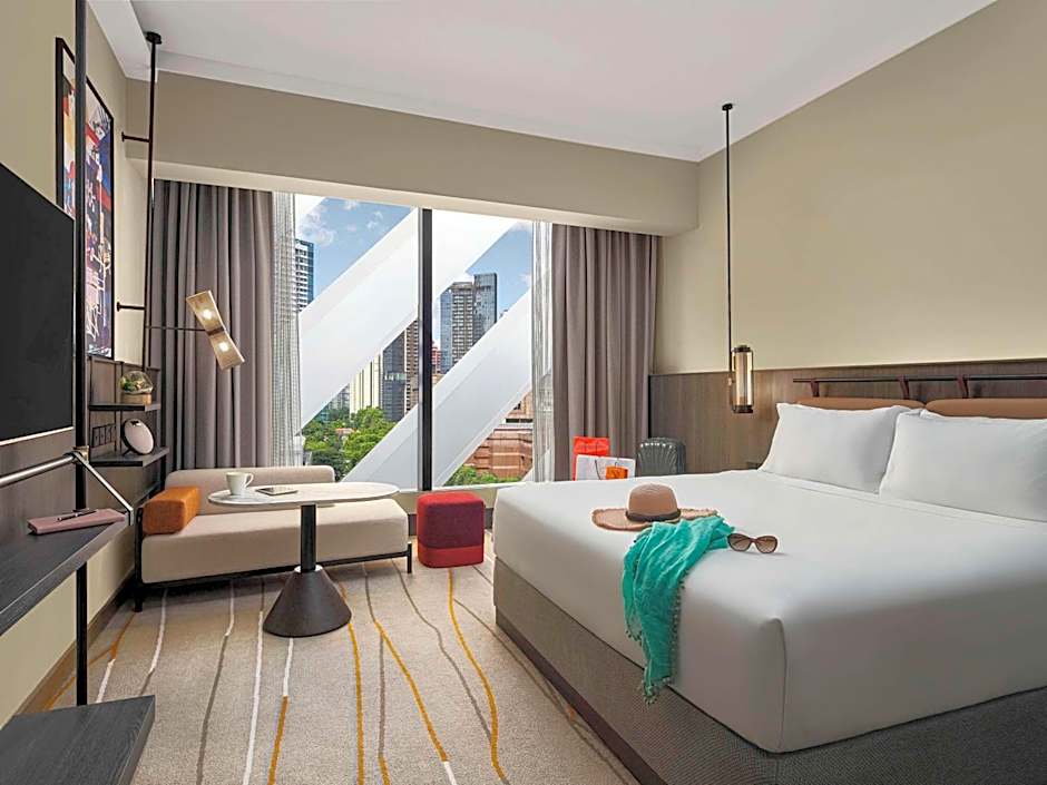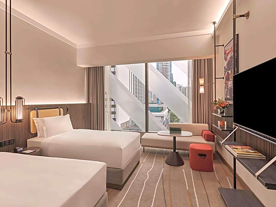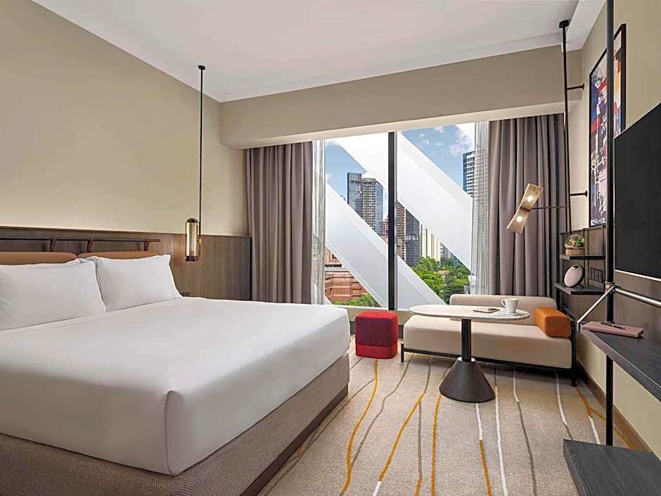 DELUXE SUITE, 1 King bed, Orchard Road View is 624 square feet and includes a king-size bed 150-183 width plus living room, desk, satellite tv , hairdryer, tea and coffee making facilities , bathrobes, and slippers.